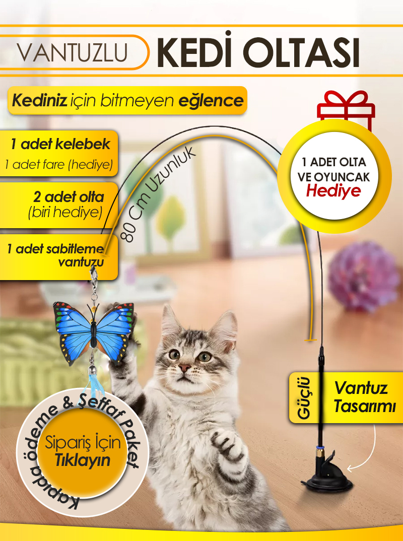 2 ADET VANTUZLU KEDİ OLTASI VE OYUNCAK ALANA +